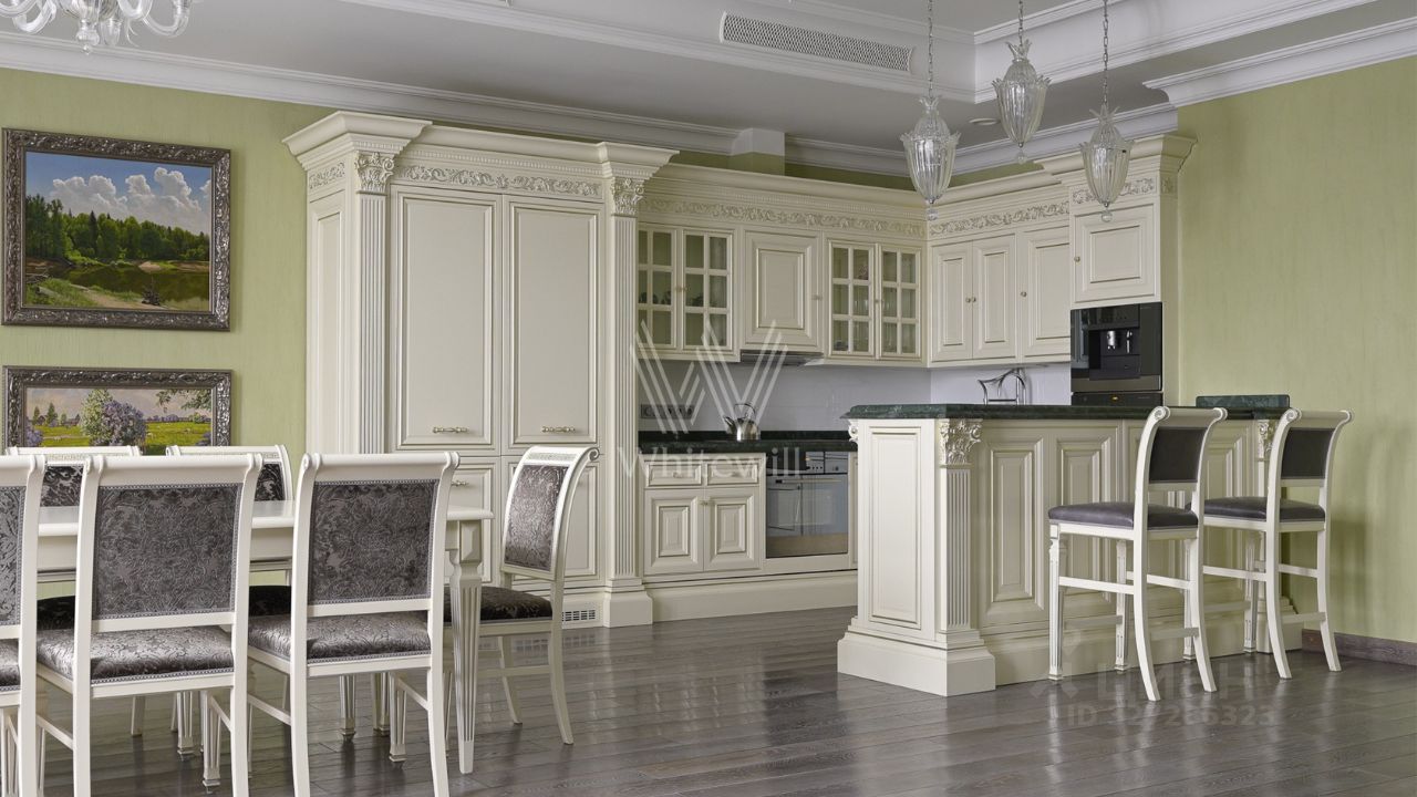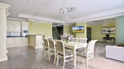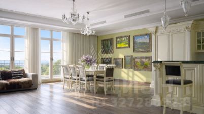 Просторная четырехкомнатная квартира общей площадью 182 м² в комплексе "Покровский берег" c панорамными видами на парк Покровское-Стрешнево. Квартира расположена на 4 этаже. Выполнена дизайнерская отделка в классическом стиле. Высокие потолки, французские окна в пол. Установлены приточно-вытяжная вентиляция с канальным кондиционированием, сантехника в санузлах от Duravit.
