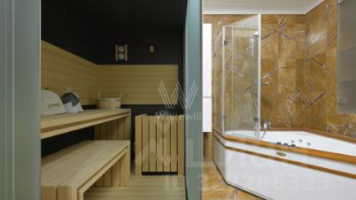 Встроенная кухня оборудована премиальной техникой ZUG из Швейцарии. Квартира укомплектована итальянской мебелью и коллекционными светильниками Barovier&Toso. Функциональная планировка включает кухню-гостиную с выходом на балкон, 2 спальни, кабинет, который можно оборудовать как третью спальню, просторный санузел с сауной и джакузи, гардеробную, гостевой санузел, кладовую и холл. За дополнительную плату возможно приобрести машино-место в подземном паркинге.
