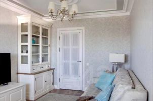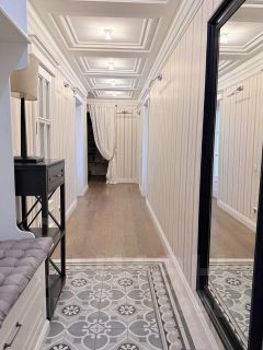 Квартира продаётся со всей мебелью, встроенной техникой, текстилем и освещением. Дизайн выполнен в спокойных белых, бежевых и мятных тонах Прованса. Зона кухни-гостиной отделена от приватной зоны жилых комнат. В квартире три спальни, две гардеробные и просторная ванная комната. Представленный план отражает реальную организацию пространства и расстановку мебели в квартире. Перепланировка узаконена.
