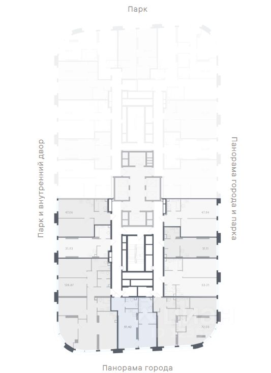 Высота потолков — 3,2 метра, большие окна в пол. В квартирах предусмотрены инженерные решения для акустического комфорта и чистый воздух благодаря близости парка и современным системам вентиляции.