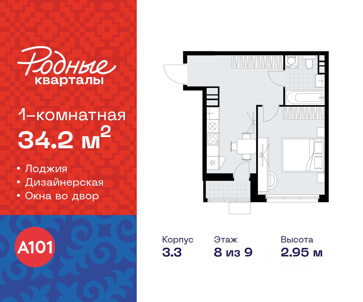 Продается однокомнатная квартира 422 в новостройке Жилой район "Родные кварталы" по адресу Москва, ТиНАО, Новомосковский АО, Марушкинское С/П, жилой комплекс Родные Кварталы, 3.3, район Внуково, Новомосковский административный округ, Москва. Общая площадь квартиры - 34.20 кв. м., этаж 8 из 9, секция 9. Тип проекта, по которому построен дом - монолит, компания-застройщик - ООО "А101". Стоимость квартиры - 12828078 Р. Срок сдачи - 2 квартал 2026.