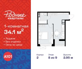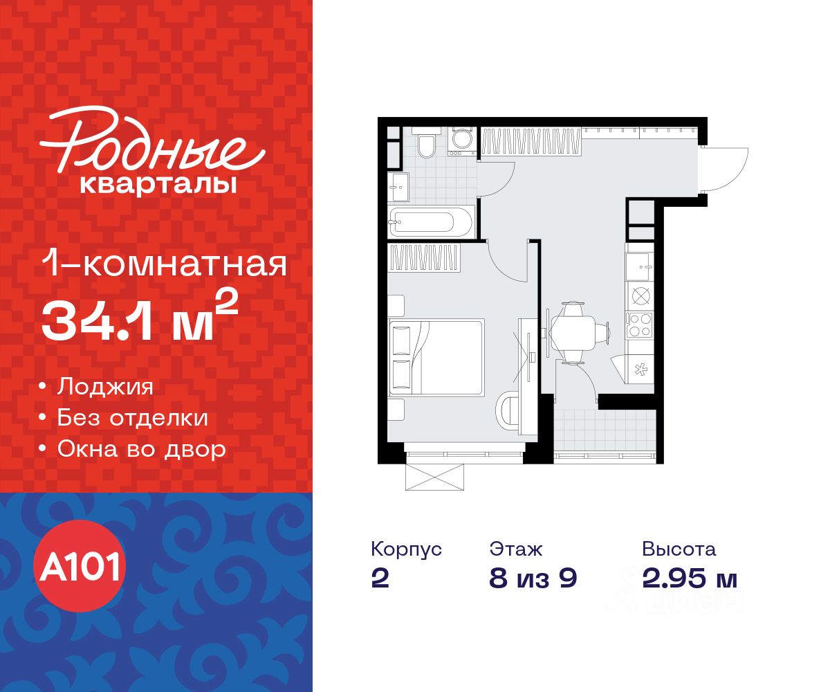 Продается однокомнатная квартира 426 в новостройке Жилой район "Родные кварталы" по адресу Москва, ТиНАО, Новомосковский АО, Марушкинское С/П, жилой комплекс Родные Кварталы, 2, район Внуково, Новомосковский административный округ, Москва. Общая площадь квартиры - 34.10 кв. м., этаж 8 из 9, секция 9. Тип проекта, по которому построен дом - монолит, компания-застройщик - ООО "А101". Стоимость квартиры - 10350032 Р. Срок сдачи - 2 квартал 2026.