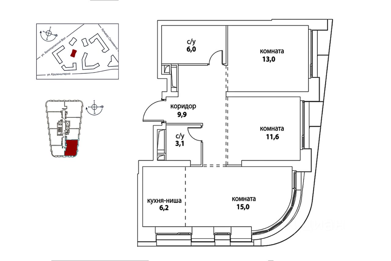В жилом комплексе Символ, корпусе Вдохновение предлагается трехкомнатная квартира без отделки. Удобная и функциональная планировка включает: кухню-гостиную, две спальни, две ванные комнаты, просторный коридор с зоной гардеробной. Панорамные окна кварты ориентированы в две стороны, открывается вид в благоустроенный внутренний двор.