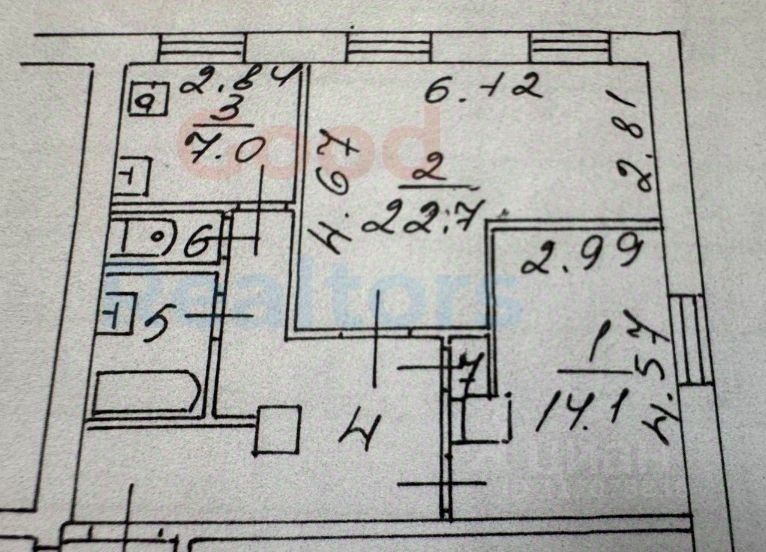 комнаты изолированные: 14,1 м² и 22,7 м²,