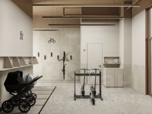 Архитектуру квартала В16 создало итальянское бюро ARCHEA middle east: каждый дом узнаваем, но вместе они складываются в спокойный, цельный ансамбль. В облицовке сочетаются тёплые оттенки кирпича и металла, за счёт игры фактур фасады выглядят живыми и меняются в разное время дня. Строгая геометрия поддерживает ритм города, а мягкая природная палитра помогает чувствовать себя дома, а не в деловом квартале.