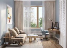 В продаже — однокомнатная квартира, общей площадью 42,69 кв. м. Квартира расположена на первом этаже десятиэтажного корпуса Балансд в квартале В16 нового района СберСити, который строит Сбер.
