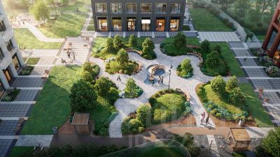 Концепция благоустройства создана в соавторстве с именитым бюро GAFA. На площади 0,35 га расположатся зоны для отдыха, занятий спортом и прогулок. Во дворе для жителей жилого комплекса будет создан коворкинг прямо на свежем воздухе - открытые беседки и Wi-Fi на территории. Атмосферу приватности подчеркнёт обилие растительности - деревья и кустарники займут 50% двора. За счёт большого количества хвойных насаждений территория жилого комплекса будет зелёной круглый год.