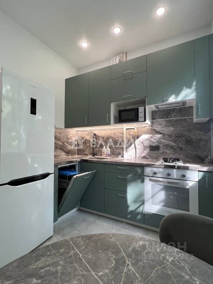 Полностью оборудованная кухня. Ванные комнаты укомплектованы под ключ. Встроенная бытовая техника премиального уровня.