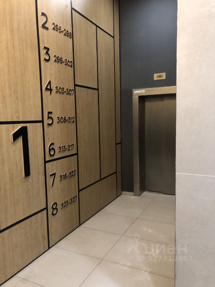 Квартира расположена на 7 этаже 8-этажной секции. Всего 5 квартир на этаже. На 1 этаже имеется колясочная. Высота потолков в бетоне 3,13 м. Два лифта. Окна выходят во двор соседнего блока корпусов.