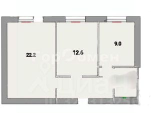 Общая площадь квартиры - 54,4 кв.м, жилая площадь — 34,8 кв. м, комнаты изолированные - 22,2 и 12,6 кв.м.,