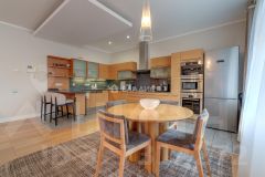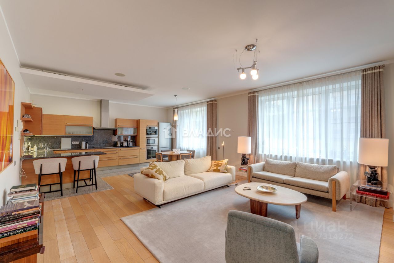 Квартира расположена на 3 этаже 16-этажного монолитного дома, построенного в 2000 году. Общая площадь — 204,2 кв. м,. Высота потолков — 3 метра, что создаёт ощущение простора и свободы. Дизайнерский ремонт выполнен с учётом всех современных тенденций, поэтому можно сразу заселяться и наслаждаться комфортом.