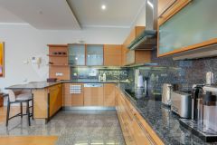 В квартире четыре изолированные комнаты, кухня площадью 51,3 кв. м, 4 совмещённых санузла. Окна выходят на улицу и во двор, что обеспечивает достаточное количество естественного света. Есть удобная лоджия, где можно обустроить место для отдыха.