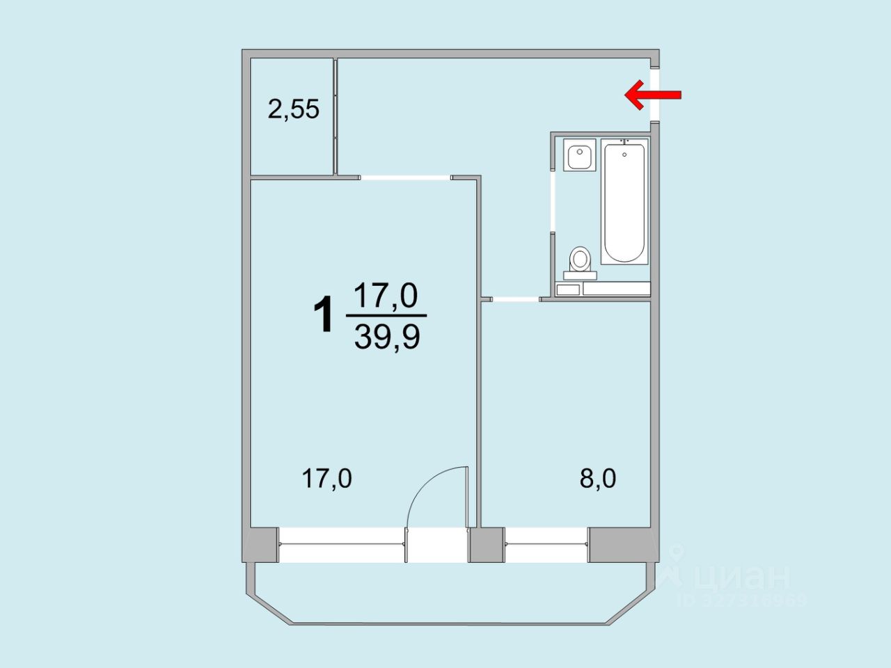 Общая площадь39,9 м²