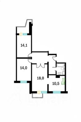 О КВАРТИРЕ: Распашонка: окна выходят во двор и на Олимпийский проспект. Но, благодаря 2-м застекленным лоджиям в квартире очень тихо. 3 комнаты: 18, 14 и 14,1 кв.м. Кухня 10,5 кв.м. Гостиная проходная. Санузел совмещенный. В квартире имеется неузаконенная перепланировка (перенесена дверь кухни, объединен с/у, мокрые точки не переносились).