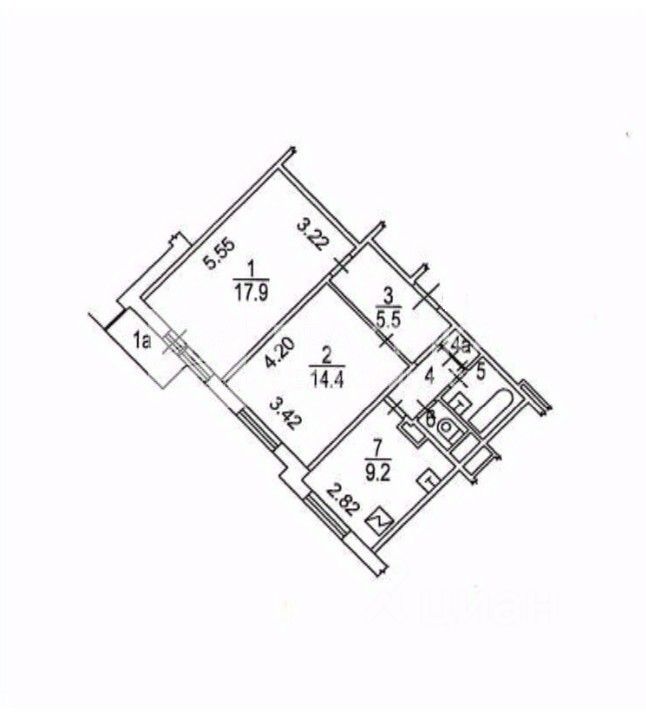 Квартира расположена на 8-м этаже 17-этажного панельного дома 1983 года постройки. Общая площадь — 53,7 кв. м. Жилая площадь составляет 32,3 кв. м, кухня — 9,2 кв. м.