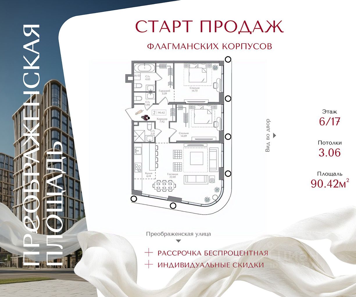 Жилой комплекс "Преображенская площадь" Премиум-класс | старт продаж долгожданных корпусов Открыт старт продаж нового объёма квартир в жилом комплексе "Преображенская площадь". В реализации — долгожданные корпуса проекта, а значит сейчас доступен лучший выбор планировок и наиболее привлекательные условия покупки. Комплекс расположен на первой линии от метро "Преображенская площадь" в историческом районе с развитой инфраструктурой. Удобный выезд позволяет добраться до ТТК всего за 7 минут, до Садового кольца — за 8 минут. Архитектура проекта продумана так, чтобы сохранить ощущение приватности: на каждом этаже расположено всего 35 квартир. Небольшое количество соседей создаёт комфортную, спокойную атмосферу проживания. Входные группы выполнены в формате гранд-лобби с камином, библиотекой и лаунж-зонами. В отделке используются натуральные материалы, формирующие стильное и статусное пространство. Закрытая территория площадью 1,5 га полностью свободна от автомобилей. Пространство двора организовано как ландшафтный парк с прогулочными маршрутами, зонами отдыха и спорта, а также гастропроменадом с кафе и ресторанами. Предусмотрен подземный паркинг с прямым доступом в жилые корпуса. В составе проекта — детский сад и IT-школа 1502 "Энергия", входящая в число лучших школ Москвы и России. Комплекс окружён крупными зелёными зонами: рядом расположены Сокольники, Измайловский и Черкизовский парки, национальный парк "Лосиный остров", ВДНХ и благоустроенная набережная Яузы. Доступна рассрочка 0% при первоначальном взносе от 20%. Старт продаж новых корпусов — возможность приобрести квартиру в премиальном проекте на самых выгодных условиях. Звоните для подробной консультации.