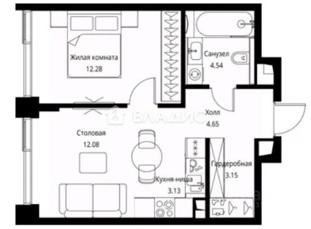 Квартира 39.83 м² с предчистовой отделкой в ЖК Сити Бэй. Отличные ВИДОВЫЕ характеристики в сторону набережной Москва реки.