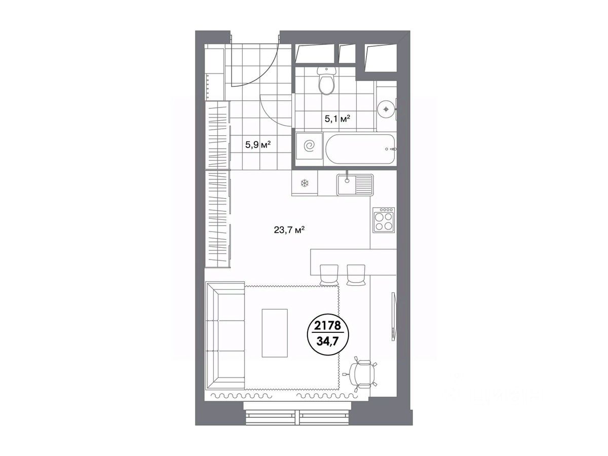 В премиальном квартале "Матч Поинт" представлены апартаменты-студия 34,7 м² на 8 этаже.