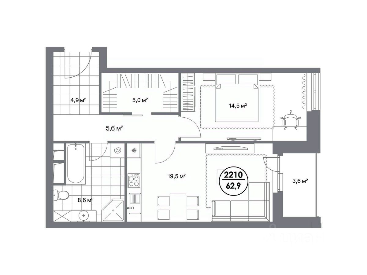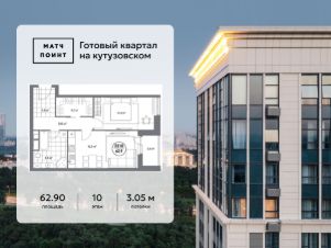 В премиальном квартале "Матч Поинт" представлены двухкомнатные апартаменты 62,9 м² на 10 этаже.