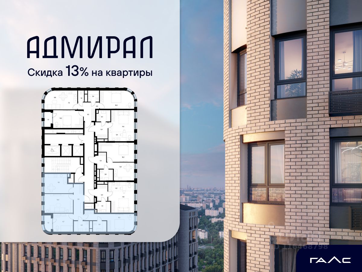 Квартира находится в корпусе жилого комплекса бизнес-класса "Адмирал", расположенного по адресу г. Москва, ул. Шоссейная, 4Д. (Застройщик - "Галс Девелопмент").