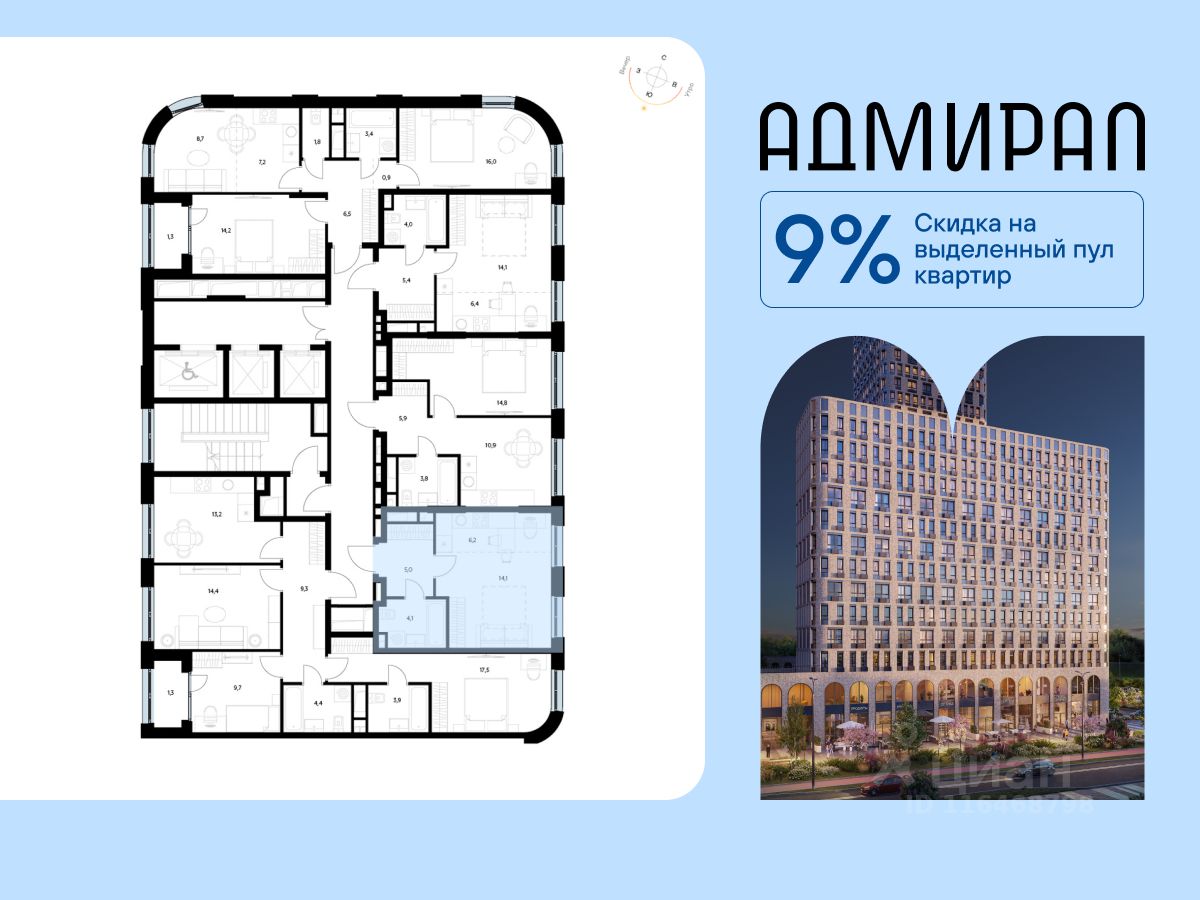 Квартира находится в корпусе жилого комплекса бизнес-класса "Адмирал", расположенного по адресу г. Москва, ул. Шоссейная, 4Д. (Застройщик - "Галс Девелопмент").