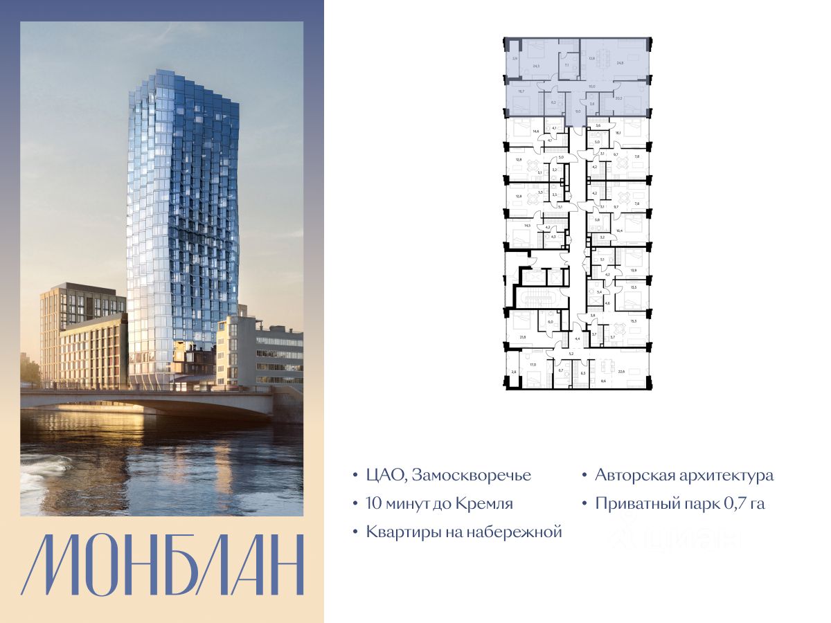 "Монблан" - элитный жилой комплекс в сердце Замоскворечья, в уникальном месте Москвы. Проект расположен в хорошо знакомом месте, напротив Дома музыки, прямо у воды.