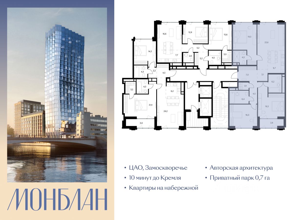 "Монблан" - элитный жилой комплекс в сердце Замоскворечья, в уникальном месте Москвы. Проект расположен в хорошо знакомом месте, напротив Дома музыки, прямо у воды.