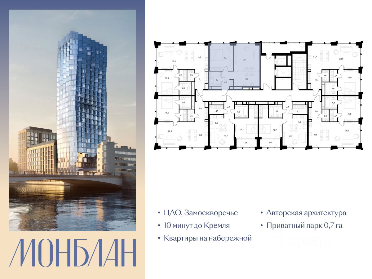 В элитном жилом комплексе "Монблан" на Шлюзовой набережной в Замоскворечье напрямую от девелопера ГК "Галс-Девелопмент" представлена 1-комнатная квартира квартира на 12 этаже общей площадью 62.90 м².
