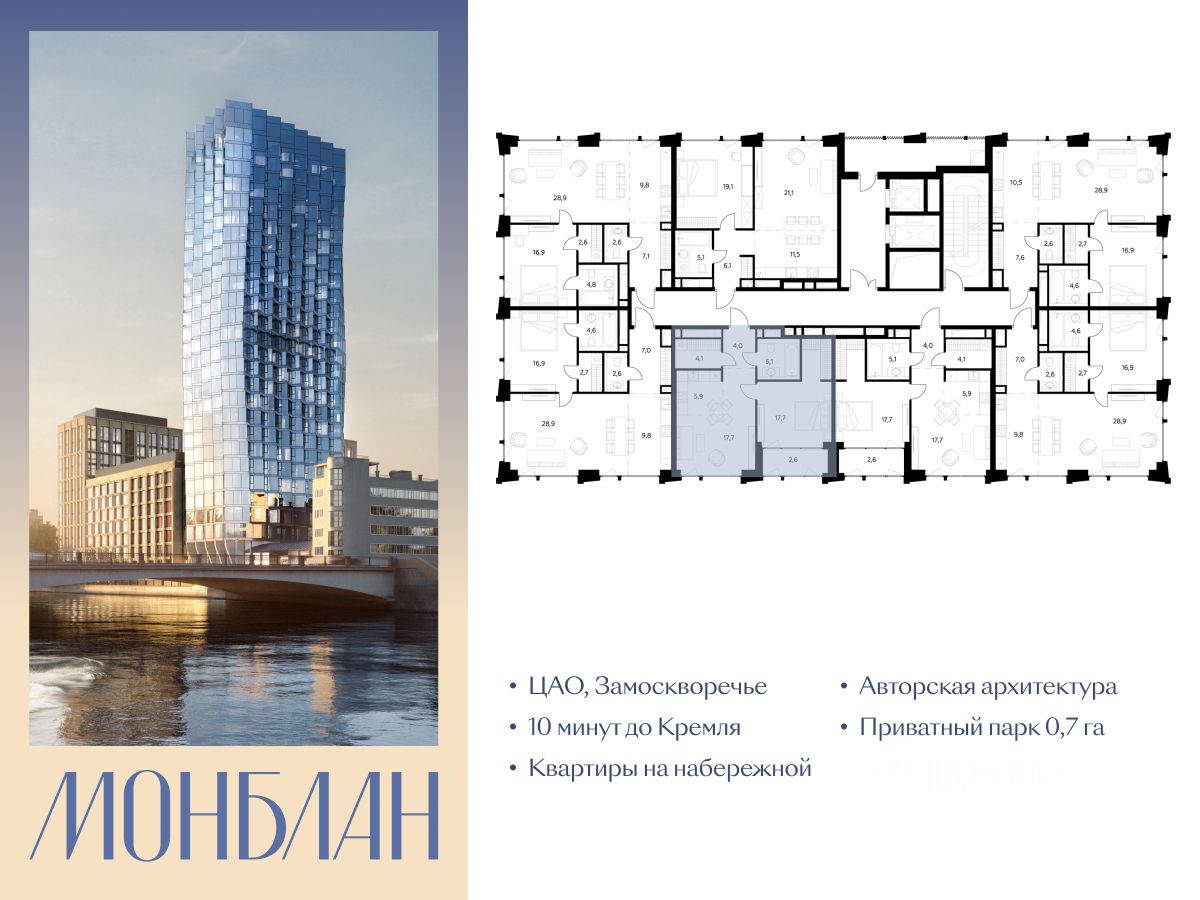 В элитном жилом комплексе "Монблан" на Шлюзовой набережной в Замоскворечье напрямую от девелопера ГК "Галс-Девелопмент" представлена 1-комнатная квартира квартира на 10 этаже общей площадью 57.10 м².