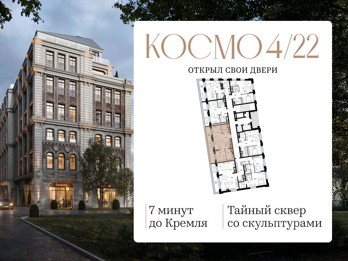 "Космо 4/22" находится всего в 7 минутах от Кремля с быстрым выездом на Садовое кольцо.