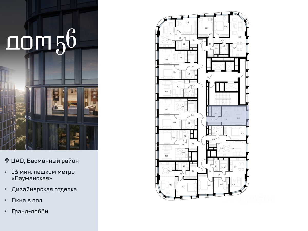 "Дом 56" - расположен в Басманном районе на ул. Фридриха Энгельса, всего в 12-15 минутах пешком от станций метро "Бауманская" и "Электрозаводская".