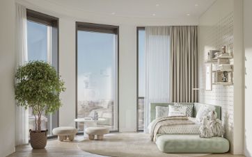 Архитектурный стиль "Дома 56" - параметрический минимализм. Футуристические фасады квартала с "эффектом закручивания" словно вращаются вокруг своей оси. Динамичный образ башен дополняет эффектное остекление - окна в пол будут в каждой квартире.