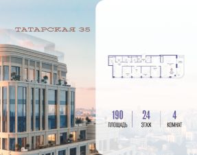 Продается просторная квартира площадью 190.00 м2 в жилом комплексе ТАТАРСКАЯ, 35. Квартира находится в 1 секции корпуса 3. Этаж 24-й из 24.