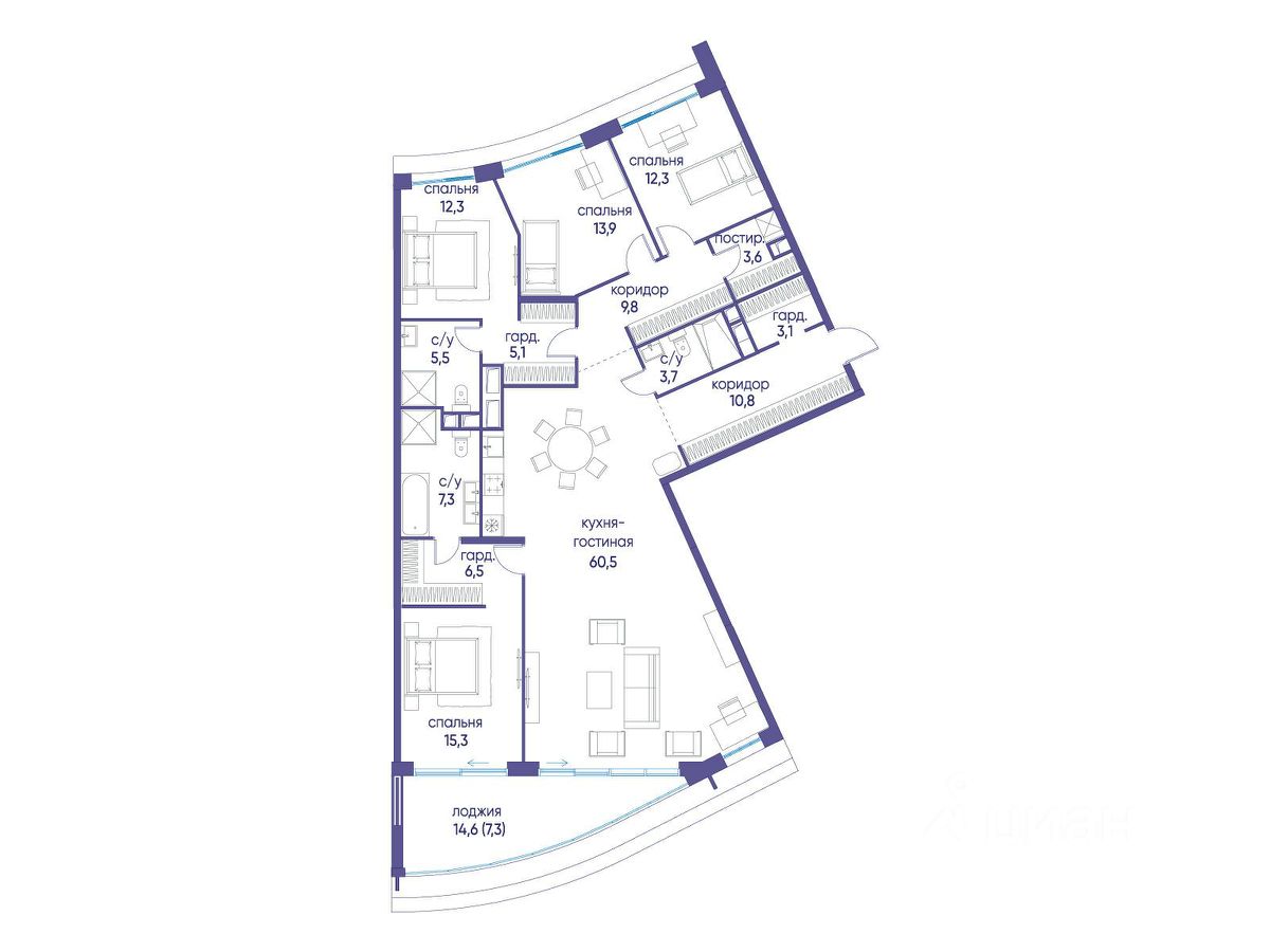 Продаётся четырехкомнатная квартира от застройщика: общая площадь 177.00 м², жилая 53.80 м², кухня 60.50 м², 10, жилой квартал "Остров 7", корпус 5 (7 квартал) (секция 1). срок сдачи: 4-кв. 2025.