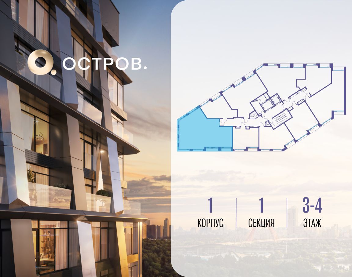 ОСТРОВ.12.1 - часть жилого комплекса на западе Москвы, в 15 минутах езды от центра. Это настоящий заповедник посреди большого города, в окружении реки и 650 га заповедников. Здесь все необходимое находится по соседству: от детского сада до супермаркета, от фитнес-зала до серфинг-центра. На территории созданы все условия для отдыха и общения: клубная инфраструктура в домах и дворы-парки, набережные и променады, маршруты для спортсменов, детей и возрастных жителей. В нескольких минутах ходьбы расположена станция метро "Мнёвники" БКЛ. На автомобиле - 10 минут до Москва-Сити и 15 минут до Садового кольца.