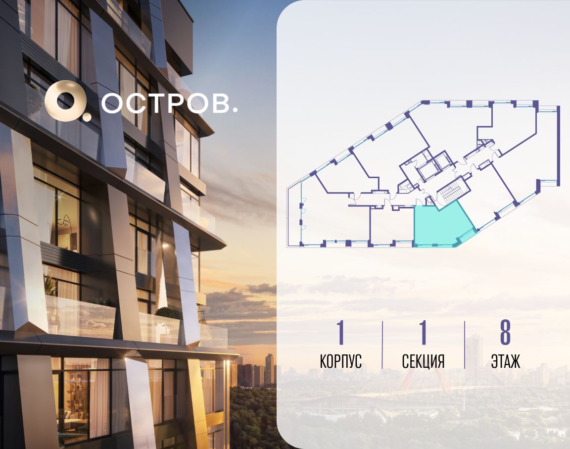 ОСТРОВ.12.1 - часть жилого комплекса на западе Москвы, в 15 минутах езды от центра. Это настоящий заповедник посреди большого города, в окружении реки и 650 га заповедников. Здесь все необходимое находится по соседству: от детского сада до супермаркета, от фитнес-зала до серфинг-центра. На территории созданы все условия для отдыха и общения: клубная инфраструктура в домах и дворы-парки, набережные и променады, маршруты для спортсменов, детей и возрастных жителей. В нескольких минутах ходьбы расположена станция метро "Мнёвники" БКЛ. На автомобиле - 10 минут до Москва-Сити и 15 минут до Садового кольца.