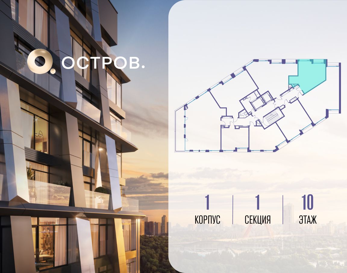 ОСТРОВ.12.1 - часть жилого комплекса на западе Москвы, в 15 минутах езды от центра. Это настоящий заповедник посреди большого города, в окружении реки и 650 га заповедников. Здесь все необходимое находится по соседству: от детского сада до супермаркета, от фитнес-зала до серфинг-центра. На территории созданы все условия для отдыха и общения: клубная инфраструктура в домах и дворы-парки, набережные и променады, маршруты для спортсменов, детей и возрастных жителей. В нескольких минутах ходьбы расположена станция метро "Мнёвники" БКЛ. На автомобиле - 10 минут до Москва-Сити и 15 минут до Садового кольца.