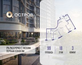 Продаётся трехкомнатная квартира от застройщика: общая площадь 99.00 м², жилая 40.30 м², кухня 35.50 м², 18, жилой квартал "Остров 7", корпус 7 (7 квартал) (секция 2). срок сдачи: 4-кв. 2025.