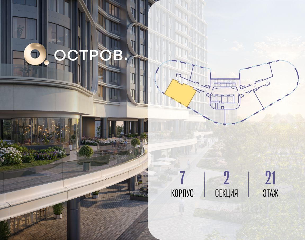 Купите квартиру в доме у прибрежного парка, в квартале ОСТРОВ.7. Это семь корпусов премиум- и бизнес-класса в одном из лучших мест ОСТРОВА - между бульваром и парком, поблизости от реки. Стильные корпуса имеют узнаваемый вид благодаря бионической пластике фасадов, приподнятых над землей. Для жителей предусмотрены детский клуб, фитнес-рум, коворкинг, переговорные, лаунжи. На крышах устроены видовые общественные пространства с зонами для отдыха и спорта. Двор расположен на двух уровнях: нижний ландшафтный парк и верхняя городская терраса.