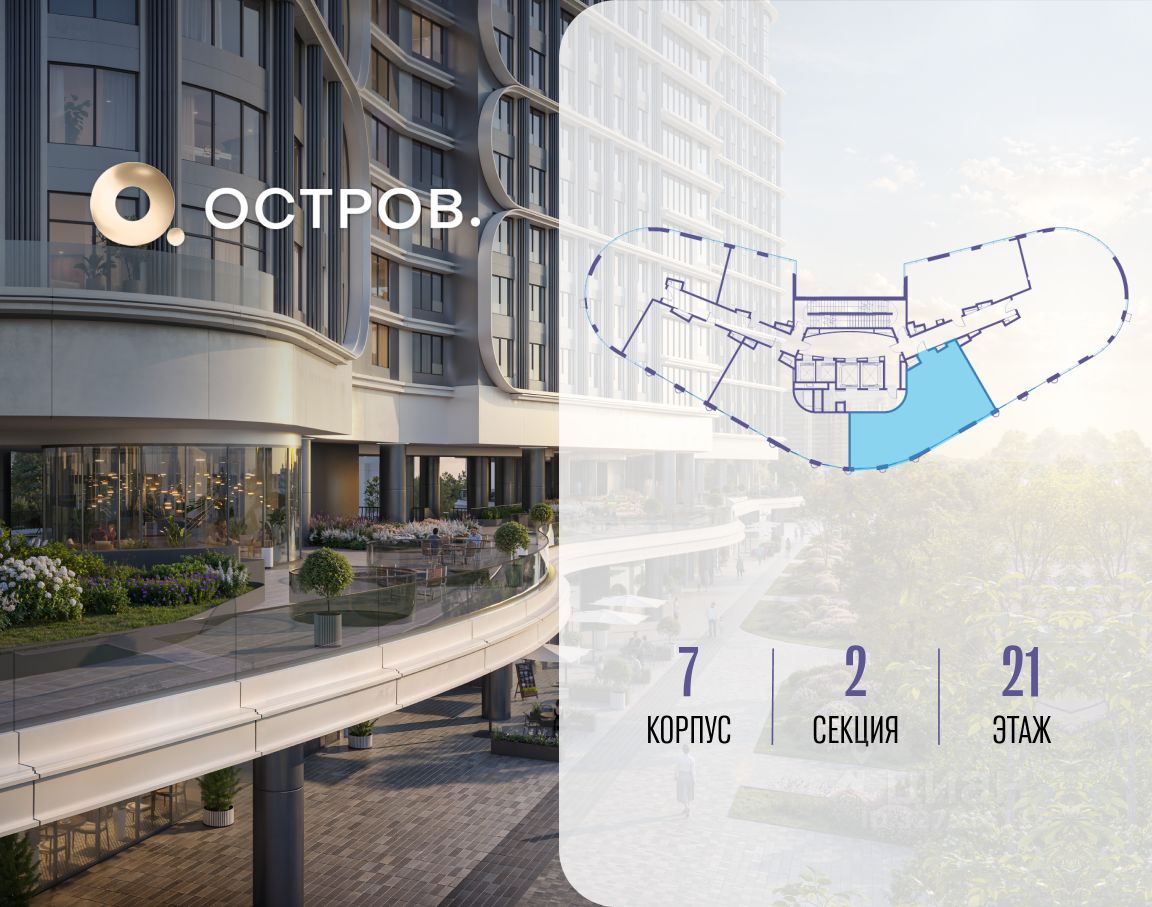 Купите квартиру в доме у прибрежного парка, в квартале ОСТРОВ.7. Это семь корпусов премиум- и бизнес-класса в одном из лучших мест ОСТРОВА - между бульваром и парком, поблизости от реки. Стильные корпуса имеют узнаваемый вид благодаря бионической пластике фасадов, приподнятых над землей. Для жителей предусмотрены детский клуб, фитнес-рум, коворкинг, переговорные, лаунжи. На крышах устроены видовые общественные пространства с зонами для отдыха и спорта. Двор расположен на двух уровнях: нижний ландшафтный парк и верхняя городская терраса.