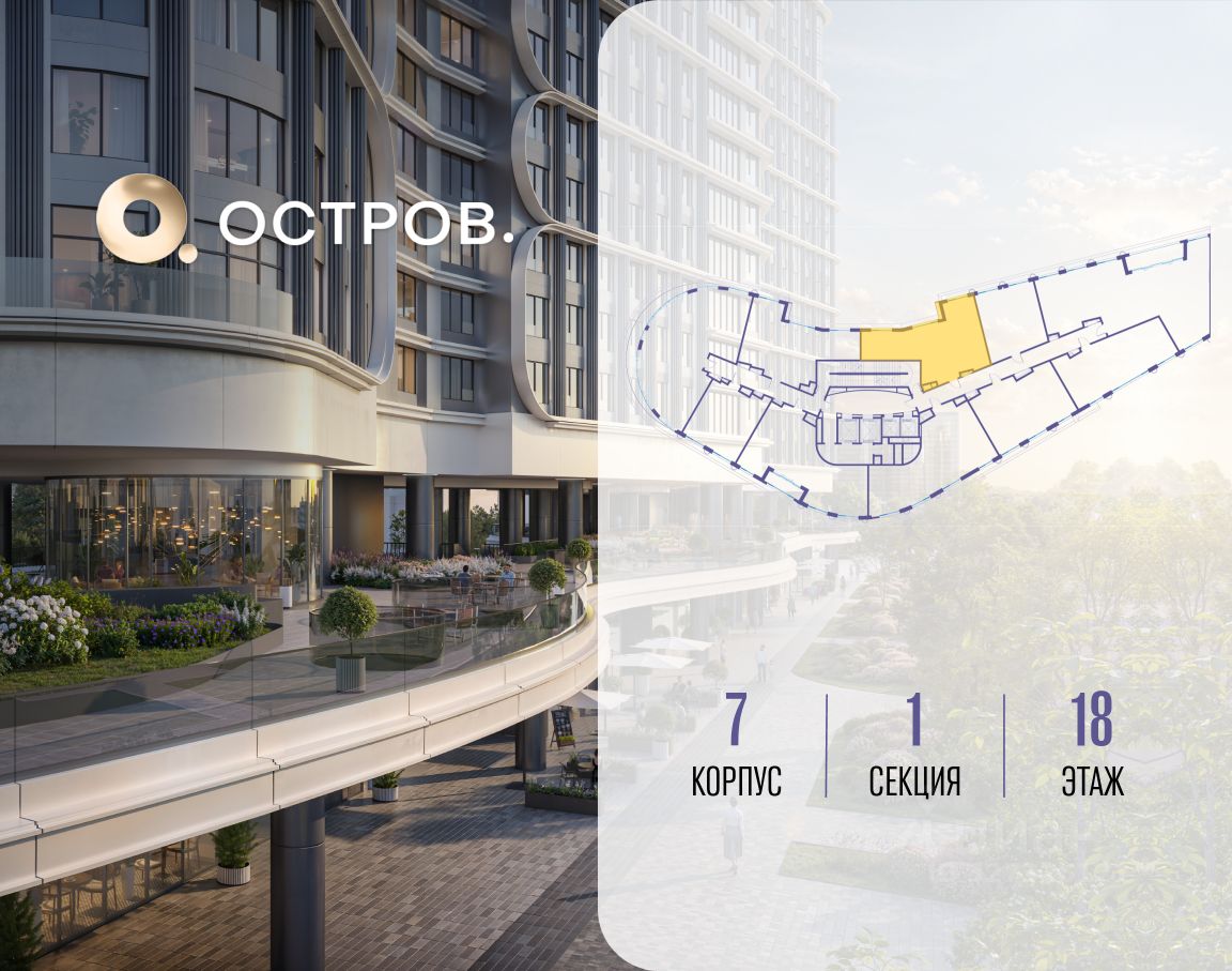 Купите квартиру в доме у прибрежного парка, в квартале ОСТРОВ.7. Это семь корпусов премиум- и бизнес-класса в одном из лучших мест ОСТРОВА - между бульваром и парком, поблизости от реки. Стильные корпуса имеют узнаваемый вид благодаря бионической пластике фасадов, приподнятых над землей. Для жителей предусмотрены детский клуб, фитнес-рум, коворкинг, переговорные, лаунжи. На крышах устроены видовые общественные пространства с зонами для отдыха и спорта. Двор расположен на двух уровнях: нижний ландшафтный парк и верхняя городская терраса.