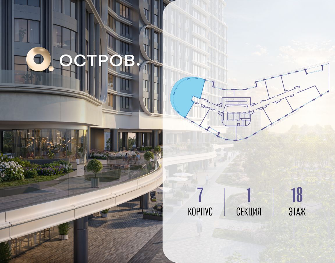 Купите квартиру в доме у прибрежного парка, в квартале ОСТРОВ.7. Это семь корпусов премиум- и бизнес-класса в одном из лучших мест ОСТРОВА - между бульваром и парком, поблизости от реки. Стильные корпуса имеют узнаваемый вид благодаря бионической пластике фасадов, приподнятых над землей. Для жителей предусмотрены детский клуб, фитнес-рум, коворкинг, переговорные, лаунжи. На крышах устроены видовые общественные пространства с зонами для отдыха и спорта. Двор расположен на двух уровнях: нижний ландшафтный парк и верхняя городская терраса.