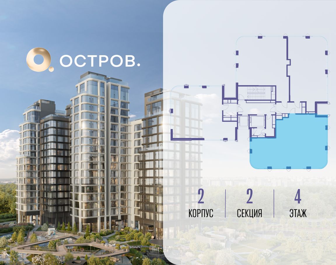 ОСТРОВ от Донстрой - жилой комплекс на западе Москвы, в Мневниковской пойме. Уникальное преимущество комплекса - в том, что он обособлен от города рекой и природным парком (650 га). Благодаря природному окружению эта территория имеет лучший экологический рейтинг в столице. Кварталы ОСТРОВА объединены ландшафтным дизайном в единое пространство - с набережными и Центральным бульваром. На ОСТРОВЕ любые объекты, необходимые для полноценной жизни и отдыха, находятся на расстоянии 15-минутной прогулки. Торговый центр и супермаркеты, кафе и рестораны, фитнес, салоны красоты, школы и детские сады. А также крупнейший в Москве спортивный кластер.