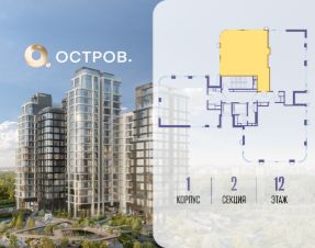 Продаётся 2-комн. квартира от застройщика: общая площадь 89.30 м², жилая 27.80 м², кухня 35.50 м², 12-й этаж, жилой квартал "Остров 12", корпус 1 (секция 2). Срок сдачи: 1 квартал 2029 года.