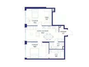 Продаётся 2-комн. квартира от застройщика: общая площадь 71.10 м², жилая 29.40 м², кухня 22.20 м², 2-й этаж, жилой квартал "Остров 14", корпус 6 (секция 1). Срок сдачи: 2 квартал 2029 года.