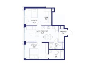 Продаётся 2-комн. квартира от застройщика: общая площадь 70.20 м², жилая 29.40 м², кухня 22.20 м², 3-й этаж, жилой квартал "Остров 14", корпус 6 (секция 1). Срок сдачи: 2 квартал 2029 года.