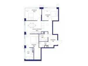 Продаётся 3-комн. квартира от застройщика: общая площадь 87.60 м², жилая 44.00 м², кухня 22.20 м², 8-й этаж, жилой квартал "Остров 14", корпус 6 (секция 1). Срок сдачи: 2 квартал 2029 года.
