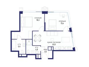 Продаётся 2-комн. квартира от застройщика: общая площадь 65.90 м², жилая 31.70 м², кухня 20.50 м², 13-й этаж, жилой квартал "Остров 14", корпус 6 (секция 1). Срок сдачи: 2 квартал 2029 года.