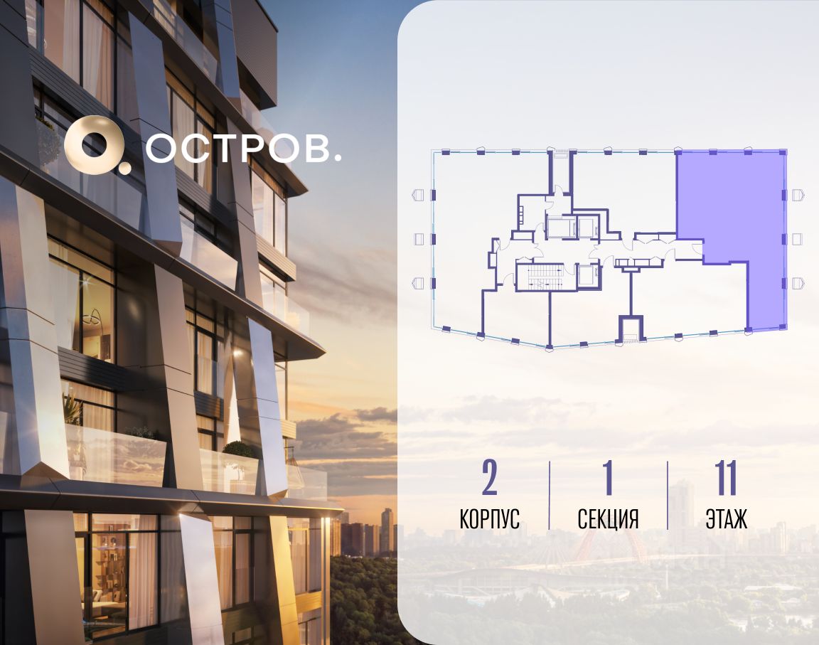 ОСТРОВ от Донстрой - жилой комплекс на западе Москвы, в Мневниковской пойме. Уникальное преимущество комплекса - в том, что он обособлен от города рекой и природным парком (650 га). Благодаря природному окружению эта территория имеет лучший экологический рейтинг в столице. Кварталы ОСТРОВА объединены ландшафтным дизайном в единое пространство - с набережными и Центральным бульваром. На ОСТРОВЕ любые объекты, необходимые для полноценной жизни и отдыха, находятся на расстоянии 15-минутной прогулки. Торговый центр и супермаркеты, кафе и рестораны, фитнес, салоны красоты, школы и детские сады. А также крупнейший в Москве спортивный кластер.