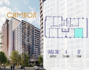 Продается 1-комнатная квартира от застройщика: общая площадь 46.50 м², жилая 17.20 м², кухня 18.20 м², 17-й этаж, жилой квартал "Гордость", корпус 36 (секция 4). Срок сдачи: 2 квартал 2029 года.